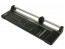 Con hoja de corte circular situada en alojamiento de seguridad cerrado de plástico. Rail de presión transparente para sujeción del papel en la posición de corte. Base en metal con escalas y formatos de papel.