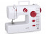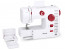 Dispone de zigzag elástico y ojal manual en 4 pasos. Integra prensatelas, enhebrador, toma de hilo, regulador de tensión, cortahílos, tornillo de ajuste de aguja, canilla, volante, lámpara y pequeño cajón oculto.