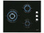 Encimera Cristal Gas con acabado en cristal negro. Con 3 zonas de cocción con quemador y parrillas esmaltadas, autoencendido y válvula de seguridad, preparada para uso exclusivo Gas Butano.