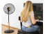 El ventilador es completamente regulable con una barra telescópica ajustable en altura desde 90 a 125 cm que se adecua a cada usuario y situación. También se puede seleccionar el ángulo de incidencia del flujo de aire.
